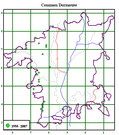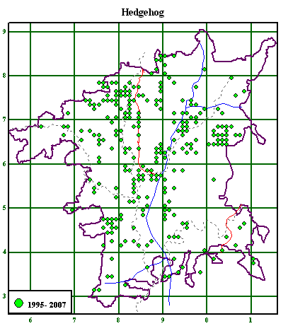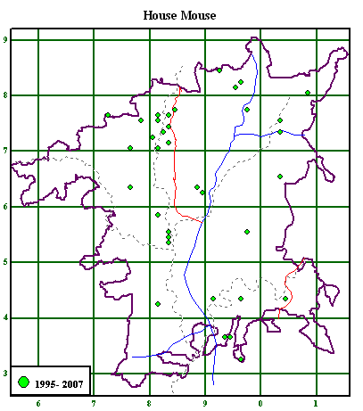 Dormice seem to be confined to the west of Worcestershire, but possible occur in more sites than so far recorded. Although found throughout the county, Hedgehogs have probably declined during the last twenty years. The lack of House Mouse records is astonishing. Wood Mice are recorded more often in houses than House Mice! Is this the correct picture? |