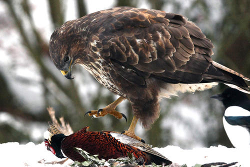 Fig. 2. Buzzard feeding on road-kill on the raptor table. Danny Arnold.