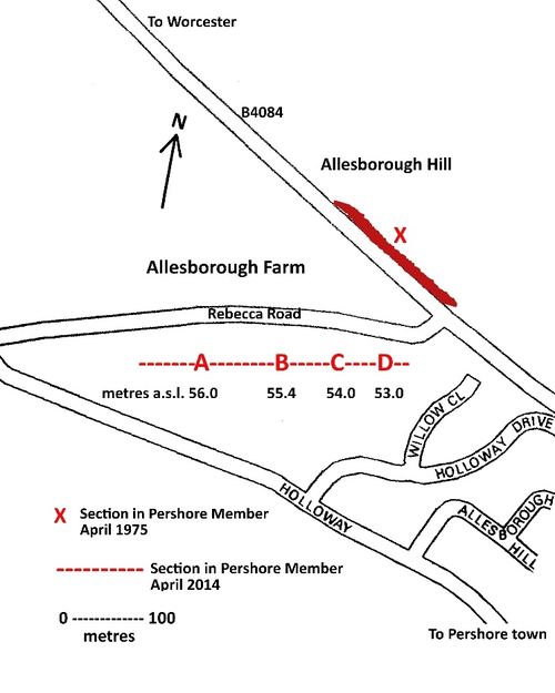 Evidence for climate and biota of the Pershore Member were unknown until 1975. In that year contemporaneous plants, molluscs and vertebrates were obtained from sections cut during a road-widening scheme (03) on Allesborough Hill, Pershore (Whitehead, 1989a).