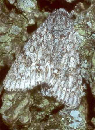 An adult of this species was photographed towards the base of a roadside Ash tree along Chevington Lane, near to Mill Meadow, Drakes Broughton, on 25.6.00. At the time I thought it was probably a Poplar Grey, Acronicta megacephala, a species sometimes found at rest on trunks in Tiddesley Wood. I was actually about to load my camera into the boot of the car, which was parked underneath the Ash tree after a visit to the Mill Meadow reserve. It was then that I noticed the moth so I took its portrait, lucky for me that I did!