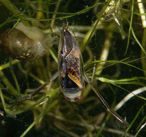 Fig. 3. Small Backswimmer Notonecta viridis on Horned Pondweed. ©Will Watson