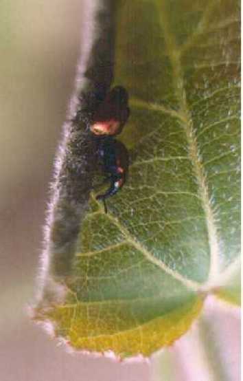 LEFT: B. populi adults constructing leaf roll, Monkwood, Worcester, June 2001