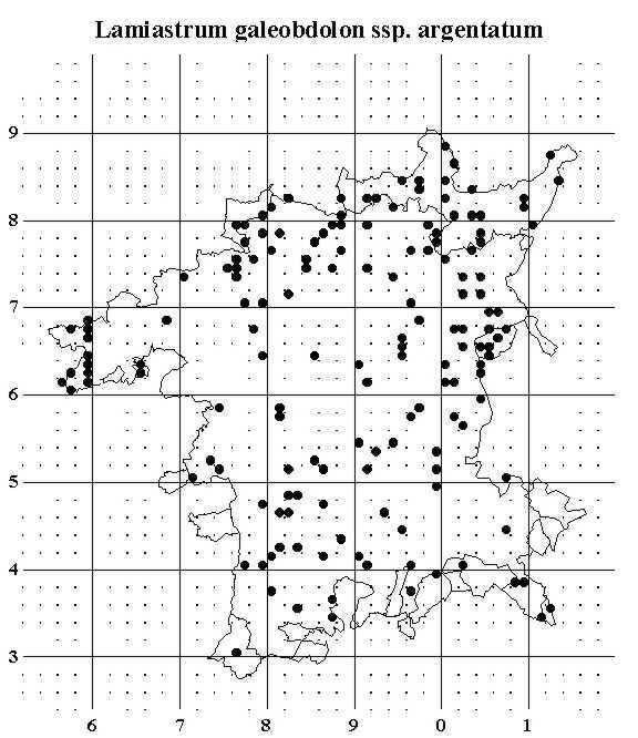 Not all maps tell a lot. The map for the alien willow Salix aegyptiaca shows the one county record, where the bush by the Berwick Brook was probably planted. The Annual Meadow-grass Poa annua map has lots of data but little information. This plant is clearly at home throughout the county. The map for the variegated garden form of Yellow Archangel Lamiastrum galeobdolon ssp argentatum looks more interesting but is hard to relate to any natural features. This increasing garden escape will compete well in many habitats (woodland, plantations, roadsides, ruderal) and the map simply shows the incidence of chance discards. I predict that in future this species will show a much greater coverage