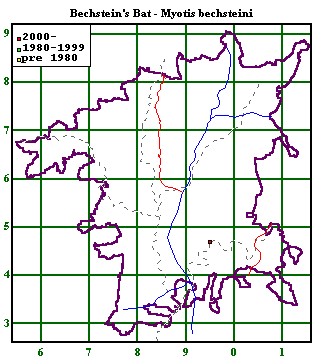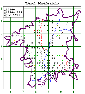 Readers will be aware that collection of records for the new Worcestershire Mammal Atlas is in full swing. The maps that follow show the number of tetrad records in the WBRC database. It's the BLACK dots (or rather the lack of them!) that are important because they show the records sent in since 2000. We need more records! Please join in and help. We need sightings of road casualties and of common animals (rabbits, grey squirrels) to see if there have been changes since the 1980's records were collected. And we know muntjac deer occur in many more woods than the maps shows - we just need the records! Wherever you go and whenever you are in the countryside provides an opportunity to record. Another recording form is enclosed with this edition of Worcestershire Record. Also remember the vice-county boundary extends in to the West Midlands as a glance at the maps will show you. There must be moles in Selly Oak, Moseley, Hall Green, Stourbridge, Halesowen ….. !