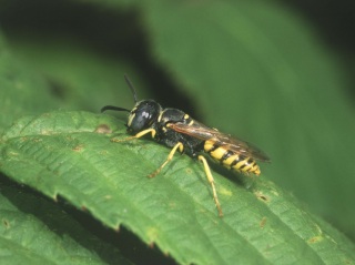 About twenty of these ‘bee-killer’ wasps were present at Cherry Orchard, Worcester, on 3.8.2005.